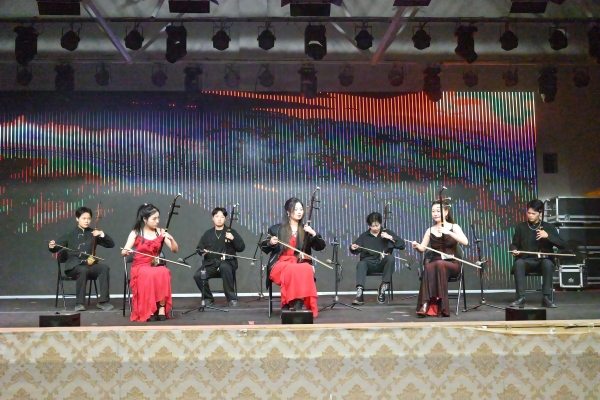 扬琴重奏《京韵风》别具一格。扬琴乐手们手法娴熟,清脆明亮的琴音在大厅中回荡。其节奏明快且富有韵律,仿佛将老北京的胡同风情、京剧的韵味一一展现。每一次敲击都像是在诉说着京城的故事,那浓郁的京腔京韵,让观众深深领略到中国传统音乐文化的独特魅力。