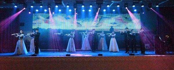 长笛独奏《卡农》随后奏响。长笛那悠扬清脆的音色,如林间潺潺溪流,又如清晨鸟儿的欢歌。演奏者以细腻的气息控制,将《卡农》中那经典的循环旋律演绎得丝丝入扣,音符在空中交织缠绕,营造出一种宁静而美妙的音乐情境,让观众沉浸其中,感受着音乐带来的心灵慰藉。