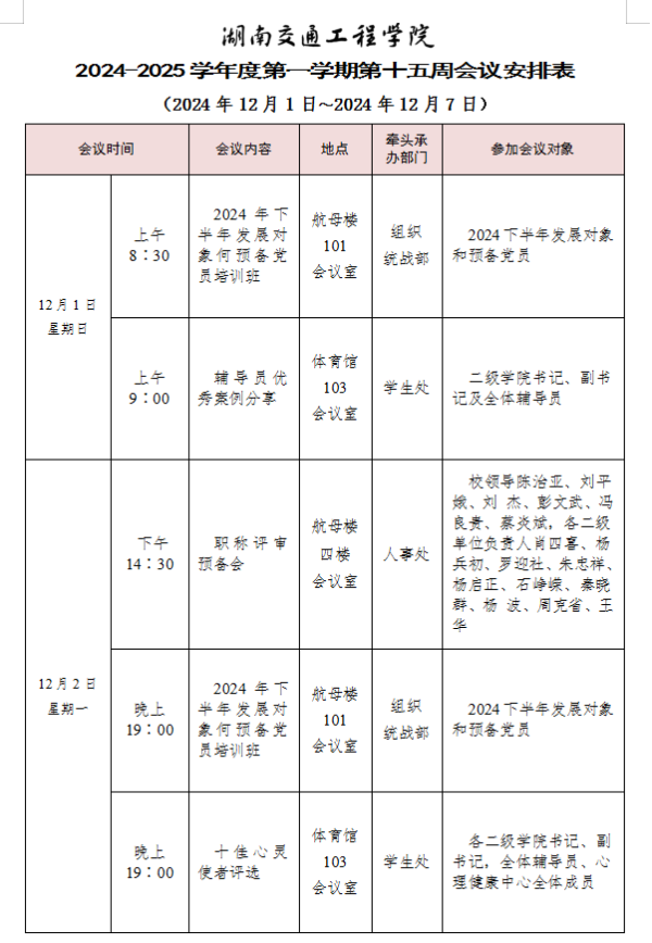 bevictor伟德官网2024-2025学年度第一学期第十五周会议安排表