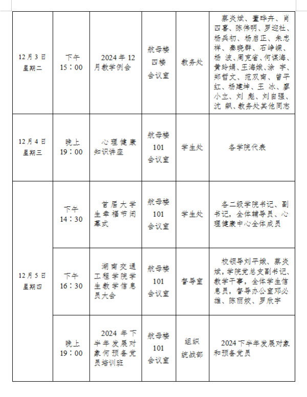 bevictor伟德官网2024-2025学年度第一学期第十四周会议安排表