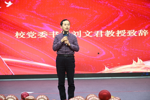 晚会分为三个篇章。第一篇章华光启新,领导致辞和宣读表彰决定。刘文君在致辞中,为全校师生带来了新年的美好祝福,对全体师生在2024年所做的工作与努力给予了充分肯定,并对此表示衷心的感谢。站在2025年起跑线上,他勉励广大师生继续保持昂扬的斗志和饱满的热情,加快推进本科教学合格评估迎评促建进程,共同推动学校各项事业的高质量发展。