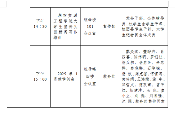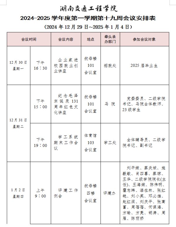 bevictor伟德官网2024-2025学年度第一学期第十九周会议安排表