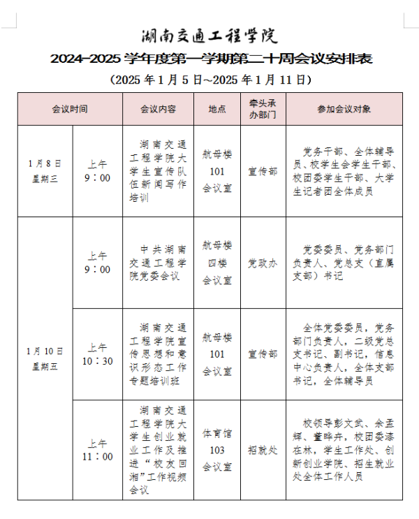 bevictor伟德官网2024-2025学年度第一学期第十九周会议安排表