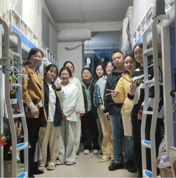 检查期间,名誉校长刘平娥、副校长余孟辉深入宿舍,与同学们亲切交流,了解学习生活近况,还前往楼栋“党员活动室”查阅相关台账,暖心传递安全理念。同学们积极回应,13 栋医学技术与护理学院李同学表示:“学校检查让我们深知安全重要,一定守规护舍。”
