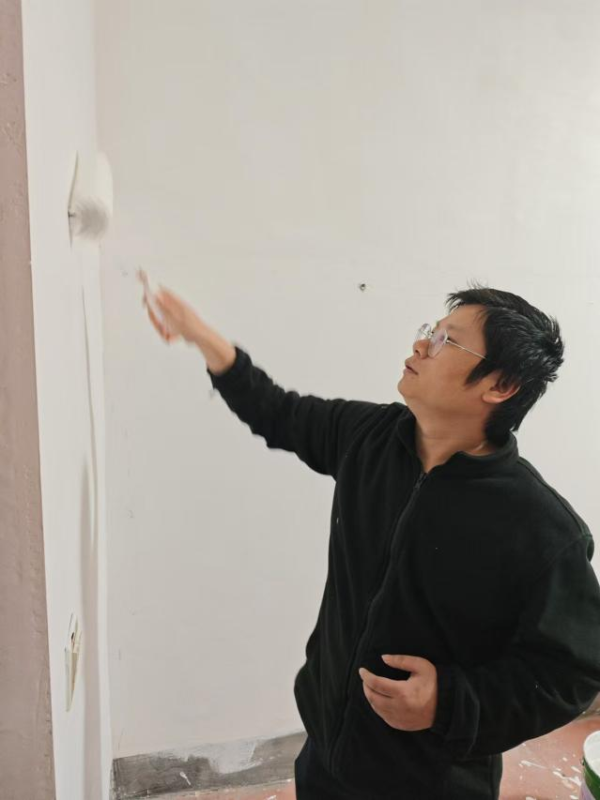 活动当日,他们身着便装,熟练地搅拌涂料、挥舞刷子,墙上污渍渐消,墙面洁白如新。大家分工协作,交流粉刷技巧,现场热火朝天。