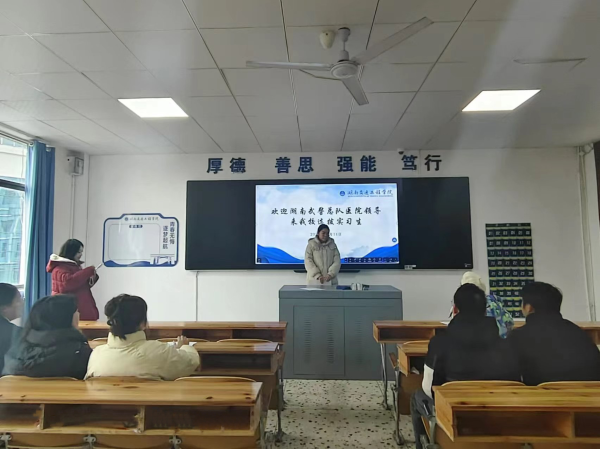 首先由教学干事老师张怡春代表医学技术与护理学院对湖南武警总队医院主管护师蒋兰兰一行人的到来表示热烈欢迎。面试开始医院负责人蒋兰兰向同学们详细的介绍了医院的发展历程、实习环境、面试要求、福利待遇等情况,让同学们对医院的基本情况有了全面的了解。随后,同学们进行面试,医护学生们通过自我介绍、专业技能测试和现场问答,逻辑清晰的给出自己的见解,全面展示了自身的素质和能力,通过经过严格的筛选和考核,李楚、文秋松、何淑雯三位同学最终凭借扎实的护理基础和出色的专业能力,成功获得实习资格湖南武警总队医院对学生们的整体表现给予了高度评价,认为学生们不仅思想素质高,而且专业能力强,充分肯定了医护学院的培养成效。
