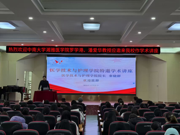 11月21日下午,医学技术与护理学院特邀中南大学湘雅医学院博士生导师、国家教学名师罗学港教授;中南大学基础医学院形态实验中心主任、湖南省解剖学会理事长潘爱华教授、南华大学衡阳医学院人体形态中心主任周小兵教授作学术讲座,医学技术与护理学院院长秦晓群教授和党总支副书记兼团总支书记刘建军及医护学院在校师生300多人参加这次学术盛宴。