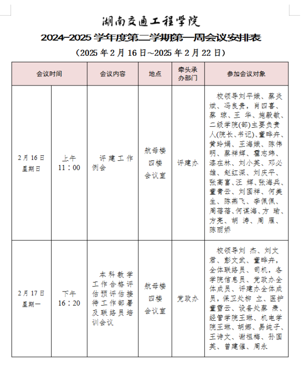 bevictor伟德官网2024-2025学年度第二学期第一周会议安排表