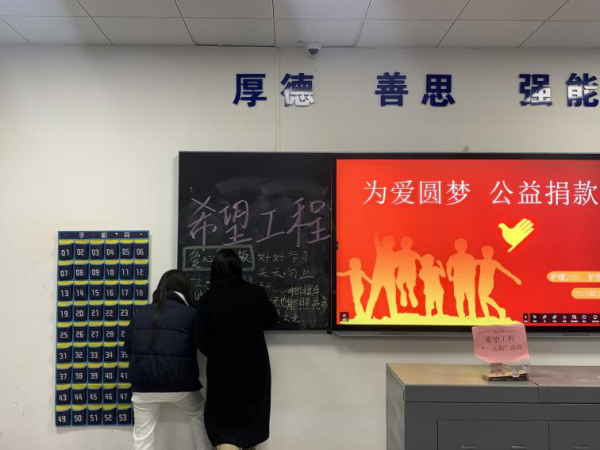 同学们有序排队捐款,班干部认真维持秩序,对于因特殊情况不便现场参与的同学,课后也单独为他们开放了线上捐赠渠道,确保每一份爱心都能传递到位。同时,在捐赠过程中,班委提前制作“爱心留言板”,捐赠者可在教室黑板的“心愿墙”上写下寄语,全程由团支书监督、记录,确保公开透明。
