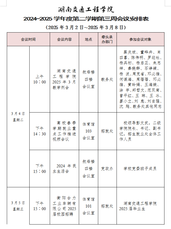 bevictor伟德官网2024-2025学年度第二学期第三周会议安排表