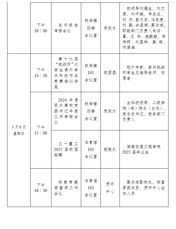 bevictor伟德官网2024-2025学年度第二学期第四周会议安排表