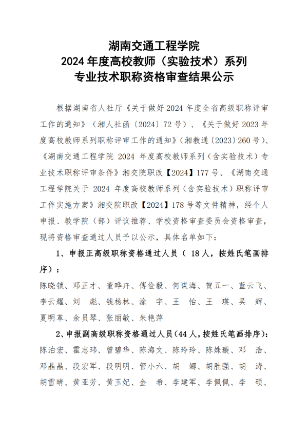 (公示版)2024年度高校教师系列职称资格审查通过人员公示名单