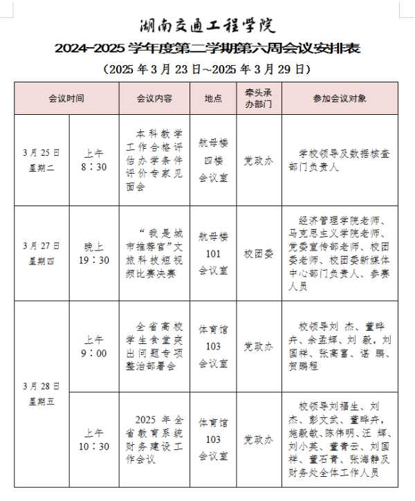 bevictor伟德官网2024-2025学年度第二学期第六周会议安排表