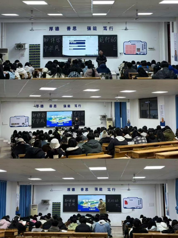 2025年3月30日晚19:00,经济管理学院全体辅导员组织全院学生于各教室开展本学期第七周主题班会,主题为“知评估,守学风,见行动”,旨在强化学生对本科教学工作合格评估的认知,促进良好学风建设,提升学生安全意识。