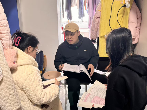 在活动中,师们分组前往不同宿舍,与学生亲切交谈。们不仅详细询问了学生们近期的课程学习进度、遇到的学业难题,还关心学生的生活起居,了解宿舍生活中的点滴。有的学生提出在专业课程理解上存在困难,导师们当场给出学习建议,分享学习方法和资源;针对学生在职业规划上的迷茫,老师们结合行业动态和自身经验,为学生答疑解惑,指明方向。在轻松的氛围中,学生们畅所欲言,将心中的困惑和想法毫无保留地与老师交流。