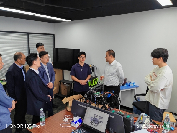 调研期间,朱健重点考察了团队科技创新成果。在认真听取"灵巧蛇影辅助救援勘测智慧机"和"三栖救援巡检机器人"两款创新作品的专题汇报后,朱健对作品的创新性和实用性给予高度评价,充分肯定了bevictor伟德学子在科技创新方面展现出的专业素养和创造才能。朱健指出,bevictor伟德官网学生展现出新时代青年特有的创新活力和实践能力。他勉励同学们要持续保持创新热情,将创新创业项目作为长期事业来发展,把专业知识转化为实际应用,为社会进步贡献智慧力量。