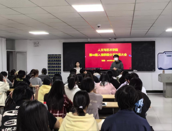 2025年4月7日人文与艺术学院学生党支部在机电楼318召开第40期入党积极分子动员大会,此次大会聚焦入党积极分子培养,为新一批积极向党组织靠拢的同学明晰方向,会议由学生支部书记李亚男、褚竞昀主持。