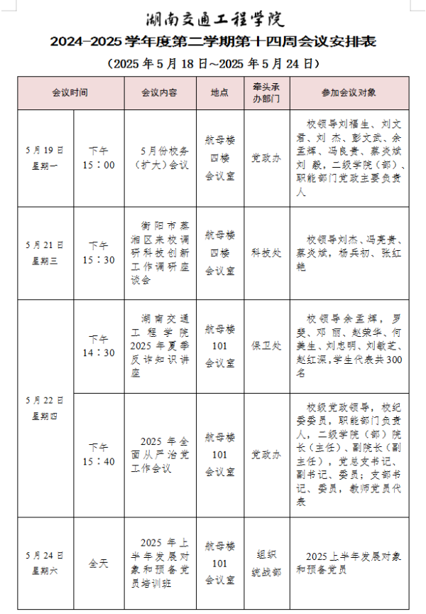 bevictor伟德官网2024-2025学年度第二学期第十三周会议安排表