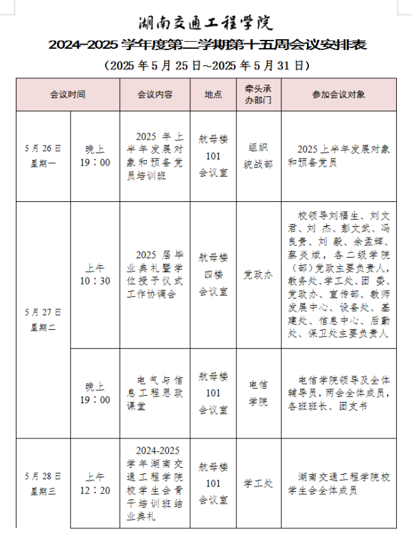 bevictor伟德官网2024-2025学年度第一学期第十五周会议安排表