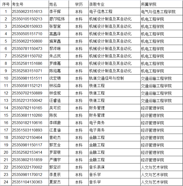 2025年福建省本科录取名单