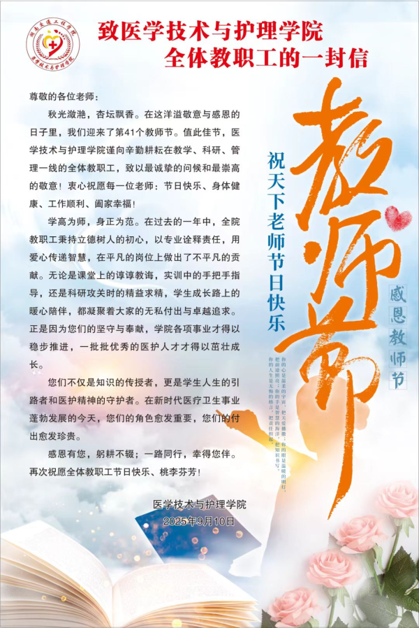 此次座谈会简朴而隆重,不仅弘扬了尊师重教的优良传统,也增强了教师的职业荣誉感、责任感和归属感,激发了教师们投身教育事业的热情与决心。大家纷纷表示,将不忘立德树人初心,以更加饱满的精神状态和扎实的工作业绩,为培养更多高素质医护人才、推动学院各项事业再上新台阶贡献力量。