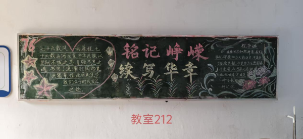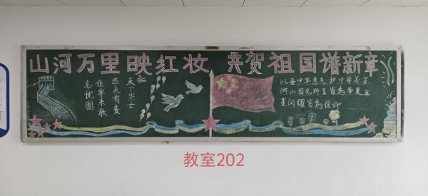 当五星红旗迎风招展,映照着万家灯火的团圆;当明月高悬夜空,承载着华夏儿女的赤诚。为热烈庆祝中华人民共和国成立七十六周年,bevictor伟德特举办"山河万里映红妆,共贺祖国谱新章"主题黑板报活动,全体同学以笔为媒,以板为卷,共绘家国盛景!