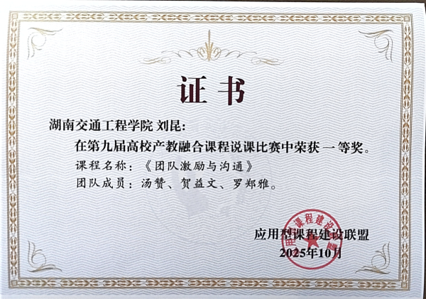 △图为第九届产教融合课程说课比赛一等奖证书