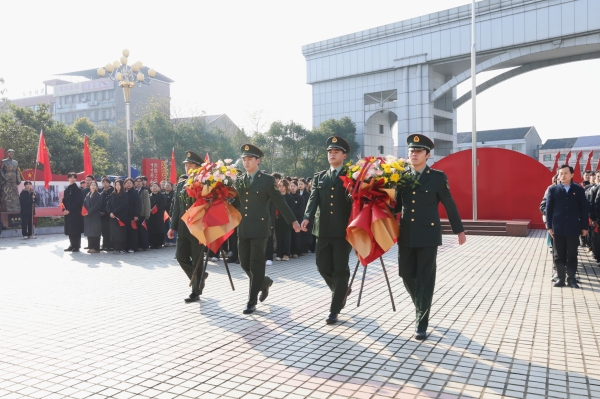 上午10时18分,在庄严肃穆的毛泽东铜像广场,全体人员肃立,鞠躬默哀,追忆伟大领袖毛泽东。国旗班学生党员代表向毛泽东铜像敬献花篮,向毛泽东及其为革命牺牲的6位亲人致以崇高的敬意。党委委员、学工部部长赵荣华带领300多名大学生党员高举右拳、面向党旗,庄严宣誓成为光荣的中国共产党党员。1200多名入党积极分子观摩宣誓并开展拉歌活动。