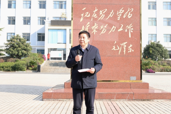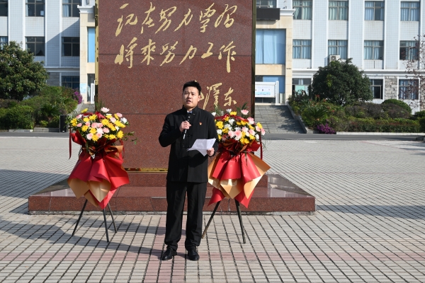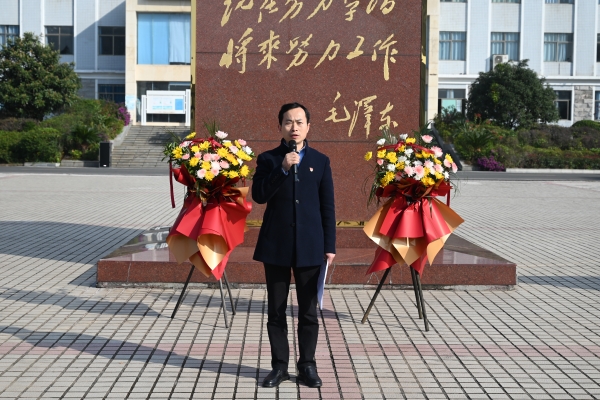 本网讯(通讯员 赵红深 李水华 摄影 邓翔 胡子婷 大学生记者团张明煜 李颖琪)有一种精神,穿越历史的云烟,仍光芒万丈;有一种怀念,历经时代的风雨,仍醇厚弥久。为进一步增强大学生党员党性意识,激发广大青年学生在实现中华民族伟大复兴中国梦的生动实践中放飞青春梦想,学校于12月26日上午组织全校学生党员和入党积极份子在学校毛泽东铜像广场举行纪念毛泽东同志诞辰132周年敬献花篮暨“青春向党”大学生集体入党宣誓”活动。党委书记刘文君出席活动并致辞,副校长蔡炎斌主持活动。