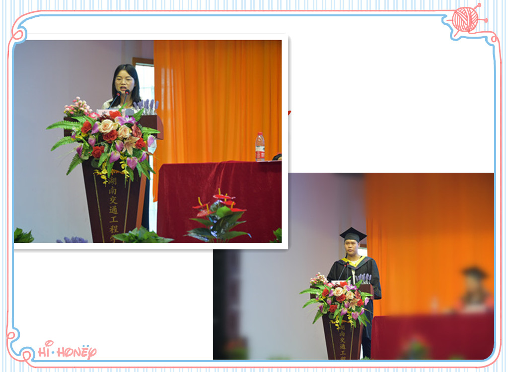 毕业生代表欧周权、在校学生代表李夏、教师代表曹艳霞先后发言。欧周权表示将秉持“厚德、善思、强能、笃行”的校训,努力在实现中国梦的伟大实践中创造属于自己的精彩人生。李夏表示定当以学长学姐为榜样,珍惜大学时光努力提升自我,永远保持对知识的渴求和对好奇的探索,继续传承和发扬交工院精神。曹艳霞表达了自己的喜悦和不舍,希望同学们要学会适应社会,坚守内心追求,常怀感恩之心。
