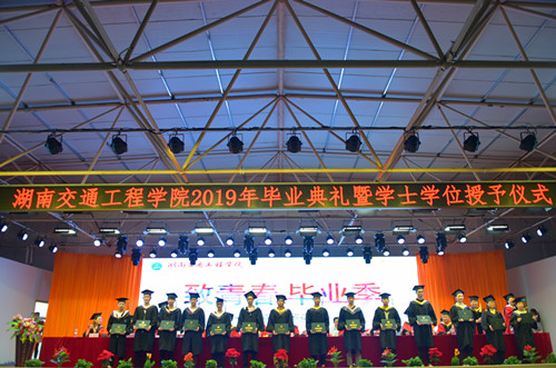刘孟祥博士宣读了学校《关于准予唐志翔等791名2019届本科生毕业的决定》;彭文武宣读了学校《关于授予唐志翔等785名2019届本科毕业生学士学位的决定》;黄名文宣读了湖南省教育厅《关于表彰湖南省普通高等学校2019届优秀毕业生和创新创业优秀毕业生的通报》;刘杰宣读了学校《关于表彰2019届考研先进个人和先进集体的决定》。校领导给省级优秀毕业生、考研先进个人和先进集体颁发了《荣誉证书》,并为获得学士学位证书的毕业生代表颁发学位证书、行拨穗礼。