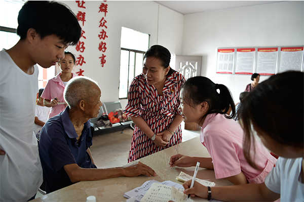 苏玲一行来到医疗组,当看到志愿队员学以致用开展爱心义诊活动,为当地居民进行血压、血糖等常规检测并耐心询问乡亲们的身体情况时,苏玲不禁竖起了大拇指。
