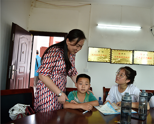 在支教组,苏玲一行察看了志愿者现场辅导官埠小学生的暖人场面,并与支教师生进行了亲切交谈,对炎炎夏日仍然坚守岗位的支教师生给予高度赞扬。
