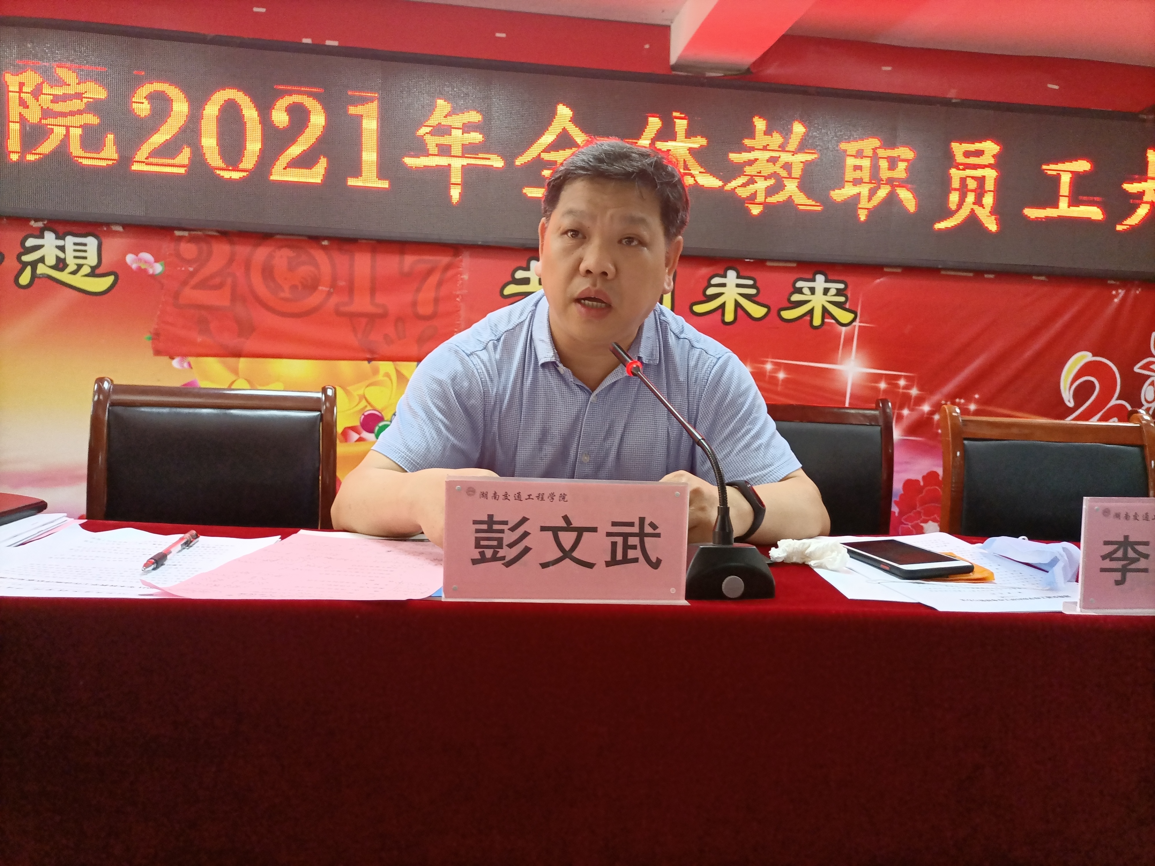 彭文武在主持会议中指出,校长的报告主题明确、内容丰富,针对性很强,为我们今后一段时期的工作指明了方向。广大教职员工的快乐幸福与学校的发展息息相关, 学校是我们的命运共同体。合格评估迎评促建工作现己进入关键时刻,大家务必增强忧患意识,全面审视各自的工作,实事求是地找差距、查短板、寻弱项,加快补齐短板、扩大优势。彭文武强调,本次会议进一步增强了广大教职工做好工作的信心和勇气,对做好今后一个时期工作具有很强的指导意义。各行政处室、各二级学院要认真组织学习讨论陈校长的报告和董事长的讲话精神,围绕学校发展大局,主动思考,积极作为,为推进迎评促建进程和“双一流”建设作出更大的贡献。(责编:彭文武)