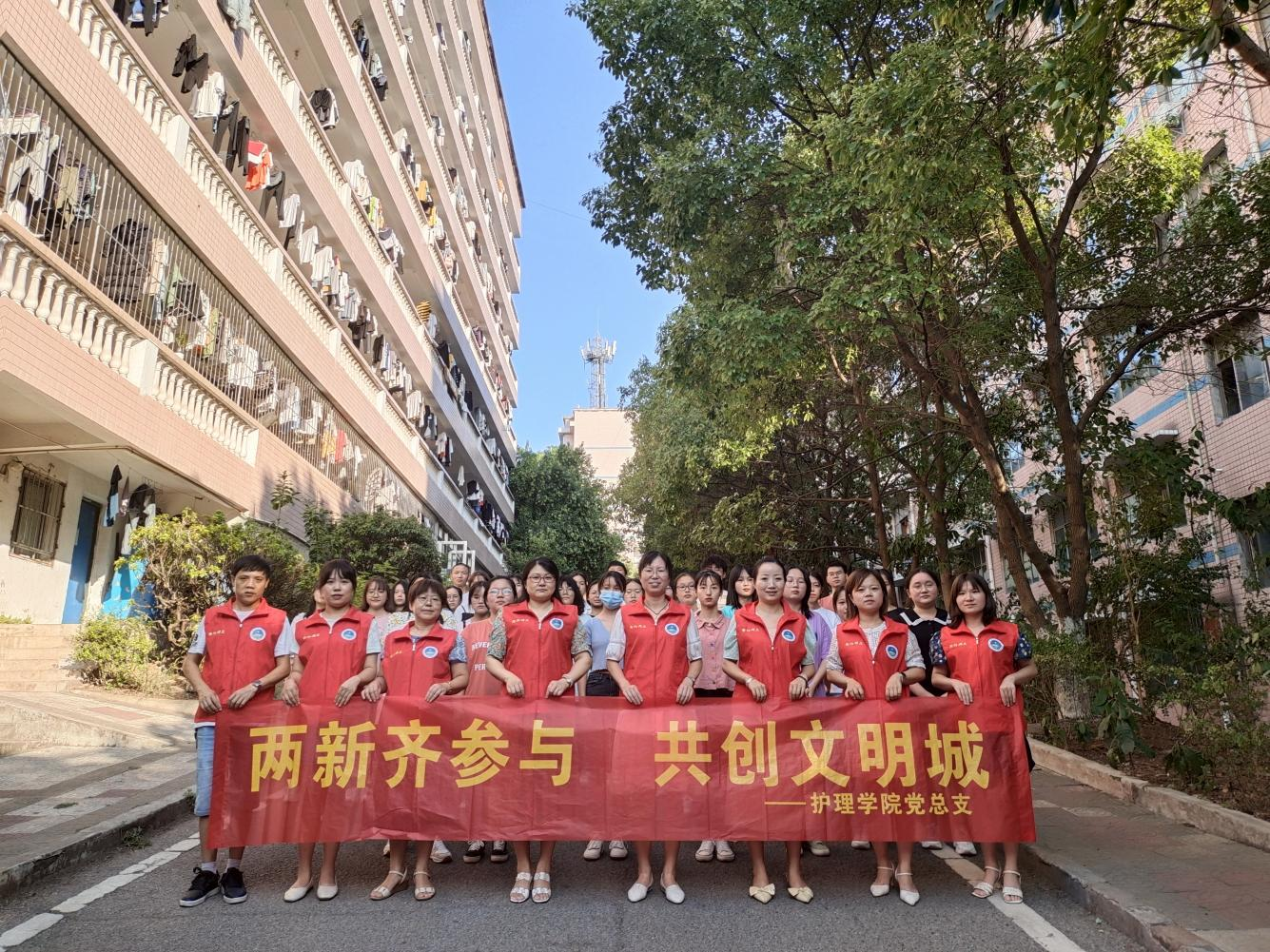 为庆祝新中国成立72周年,响应衡阳市创全国文明城市的号召,护理学院于2021年9月30日组织开展了“两新齐参与,共创文明城”主题党日活动。