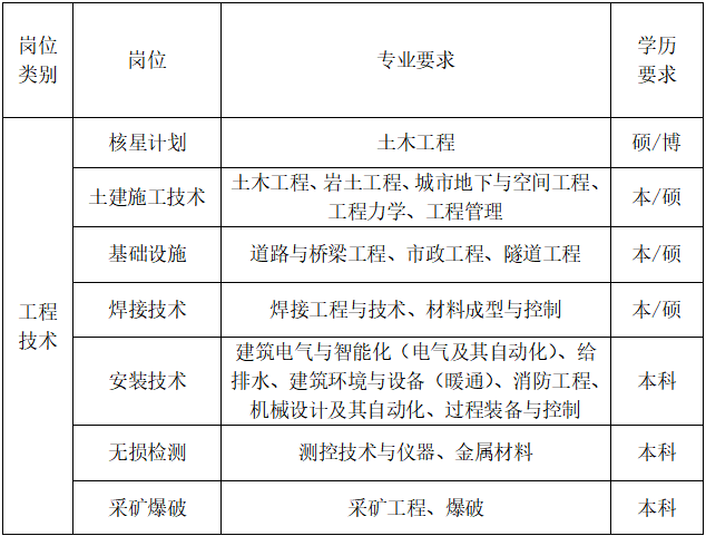 “核星”计划:重点院校土木工程专业硕士及以上学历毕业生择优列入计划,提供学习成长、锻炼平台、发展通道、导师培养四类保障。硕士年收入(税前)第一年15万,第二年18万,第三年20万。本科年收入(税前)第一年12万,第二年15万,第三年18万。考核优良发放年度奖金。