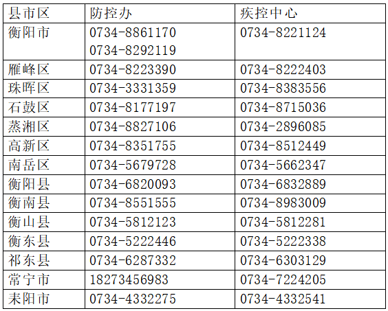 衡阳市各县市区防控办和疾控中心信息一览表