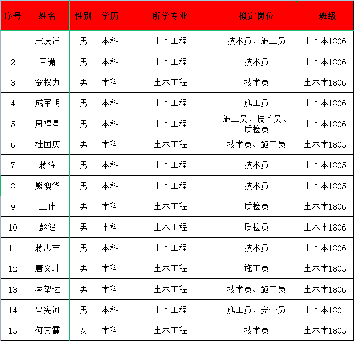 (本网讯 通讯员彭雨情 李麦 胡增燕)我院被中国核工业华兴建设有限公司录用名单如下:
