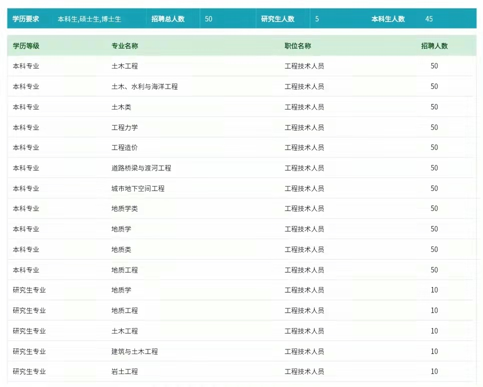 招聘总人数:50(研究生:5 本科生:45)