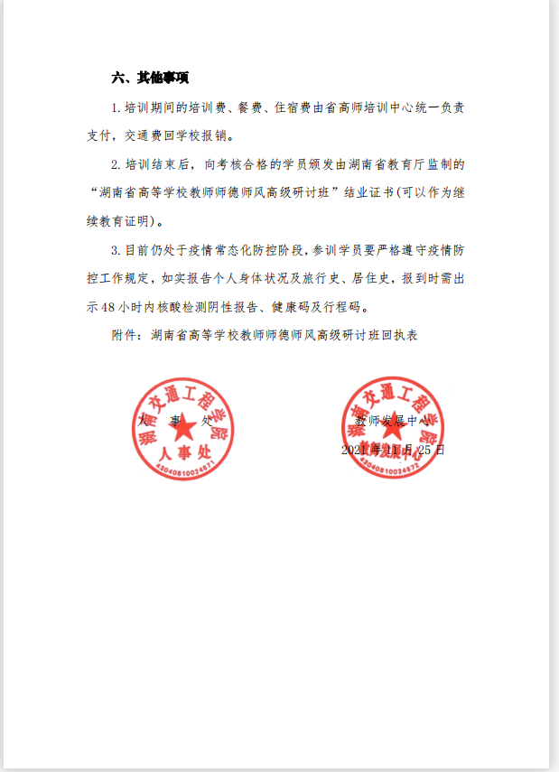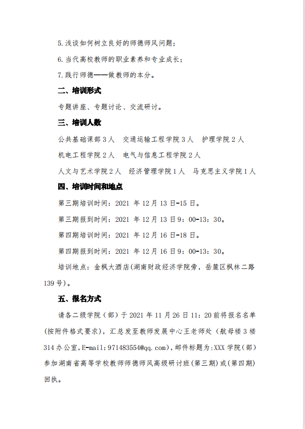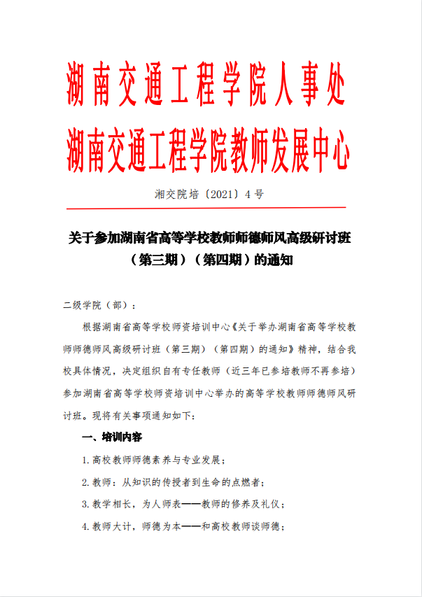 关于参加湖南省高等学校教师师德师风高级研讨班(第三期)(第四期)的通知
