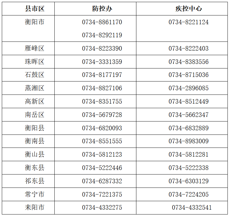 衡阳市各县市区防控办