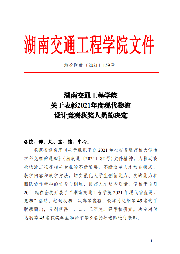 bevictor伟德官网关于表彰2021年度现代物流设计竞赛获奖人员的决定