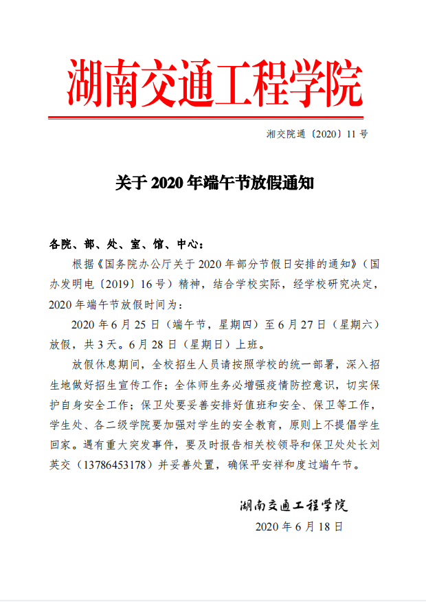 关于2020年端午节放假通知