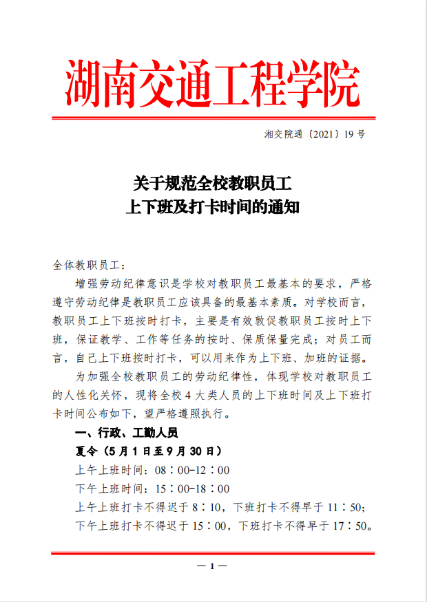 关于规范全校教职员工上下班及打卡时间的通知
