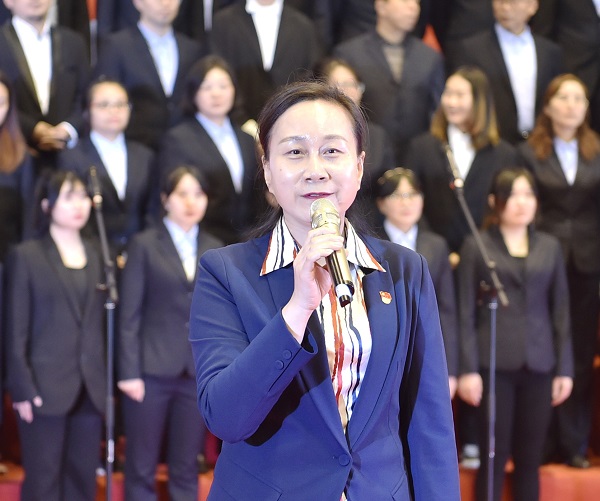 晚会开始前,全体起立,奏唱中华人民共和国国歌,随后苏玲为本场晚会致辞,她说道,唱响红色歌曲不仅仅是一种追忆,一种传承,更重要的是一种感受,一种力量,通过这次活动,希望我们全校师生都能够凝聚人心,凝聚士气,凝聚力量,唱出激情,唱出感情,唱出豪情,并将这种精神和力量融入学校建设发展各项工作之中!