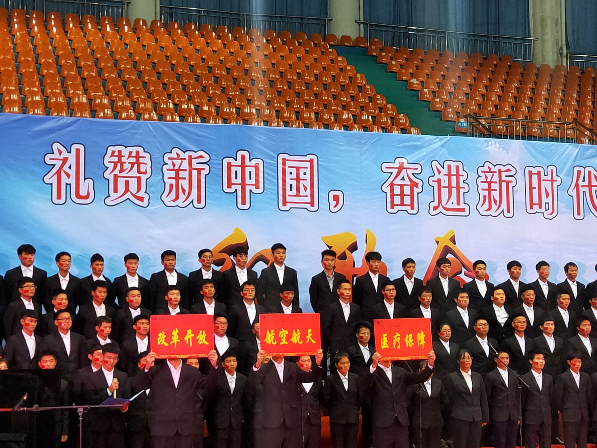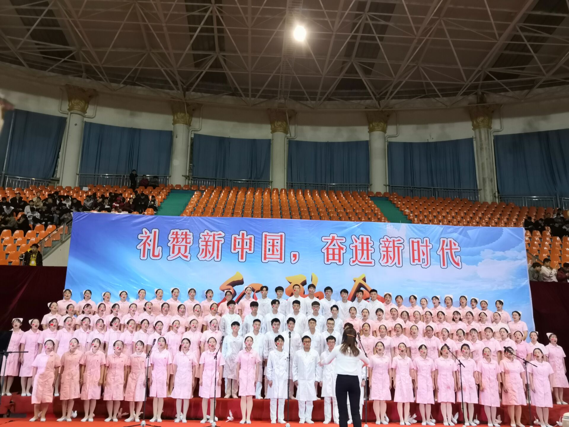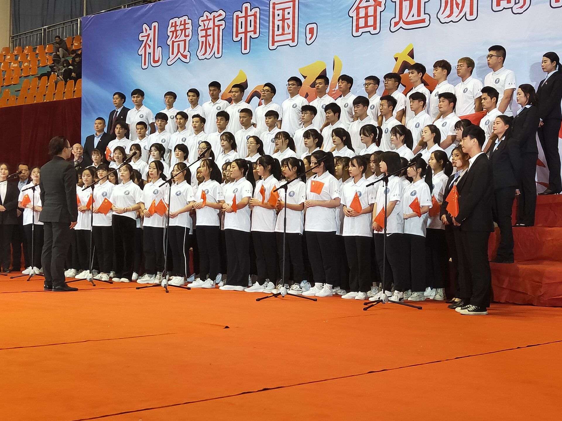 11月28日,晚上七点,由中共bevictor伟德官网委员会主办、党委党务工作部、党委宣传部、团委、学生工作部、人文与艺术学院承办的“礼赞新中国,奋进新时代”红歌会,在bevictor伟德体育馆隆重上演。校党委书记苏玲、校长章怀云、副董事长兼第一副校长刘杰、名誉校长刘平娥、党委副书记李先聪、副校长刘孟祥、副校长陈善良、副校长黄名文、副校长杨兵初、副校长董晔卉、本科合格评估专家高科院张伟超教授,衡阳师院评估办主任彭巧燕教授,湖南工学院质量监控科科长罗元云教授及各二级学院书记、院长、副书记、副院长,行政各处室负责人应邀欣赏了这场精彩的红色盛典,体育馆内座无虚席。