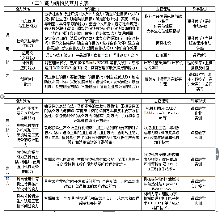 普通及自动化机械加工设备的实际操作、维修和管理等能力,能适应社会主义市场经济环境下