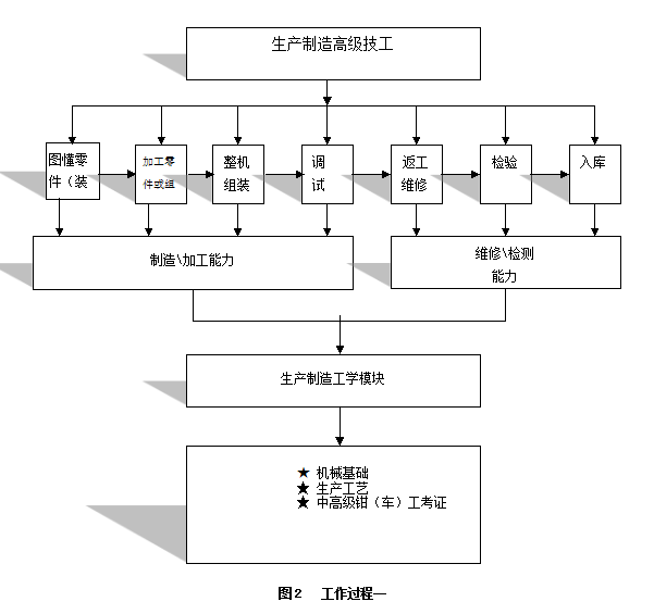 (一)机械设计与制造专业双证融通情境教学工学模块工作过程及专项能力分析流程图见图1,其中具体的工作过程见图2-图5。