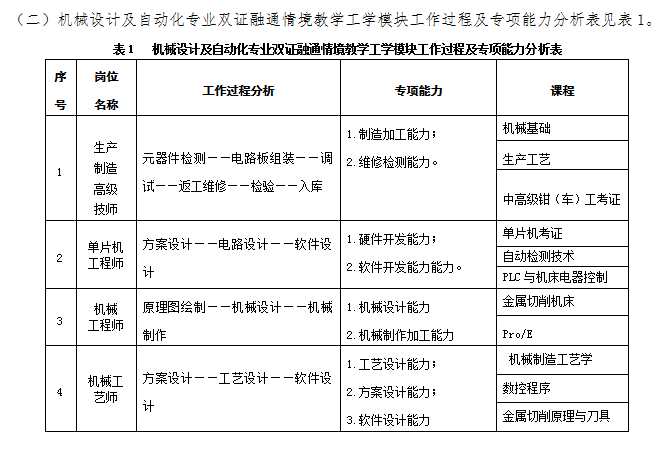 六、双证融通情境教学工学模块工作过程及专项能力分析