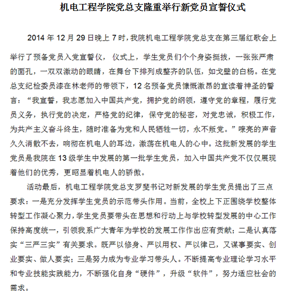 机电工程学院党总支隆重举行预备党员入党宣誓仪式